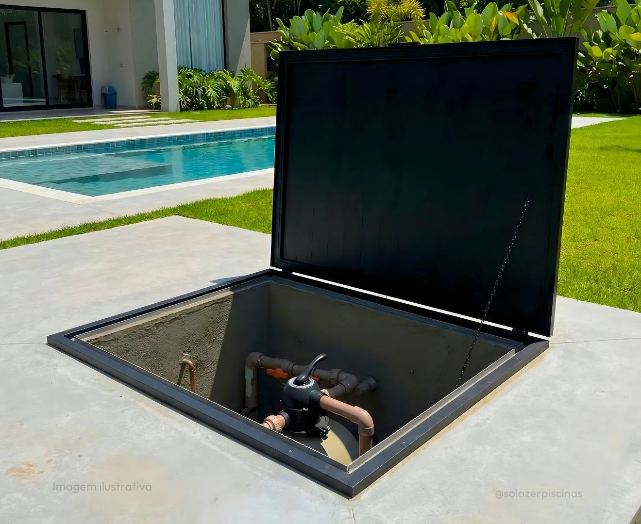 A tampa para casa de máquinas protege seus equipamentos com segurança e discrição. Fabricada com materiais resistentes, garante durabilidade e fácil acesso à manutenção, preservando a estética da sua área de lazer.