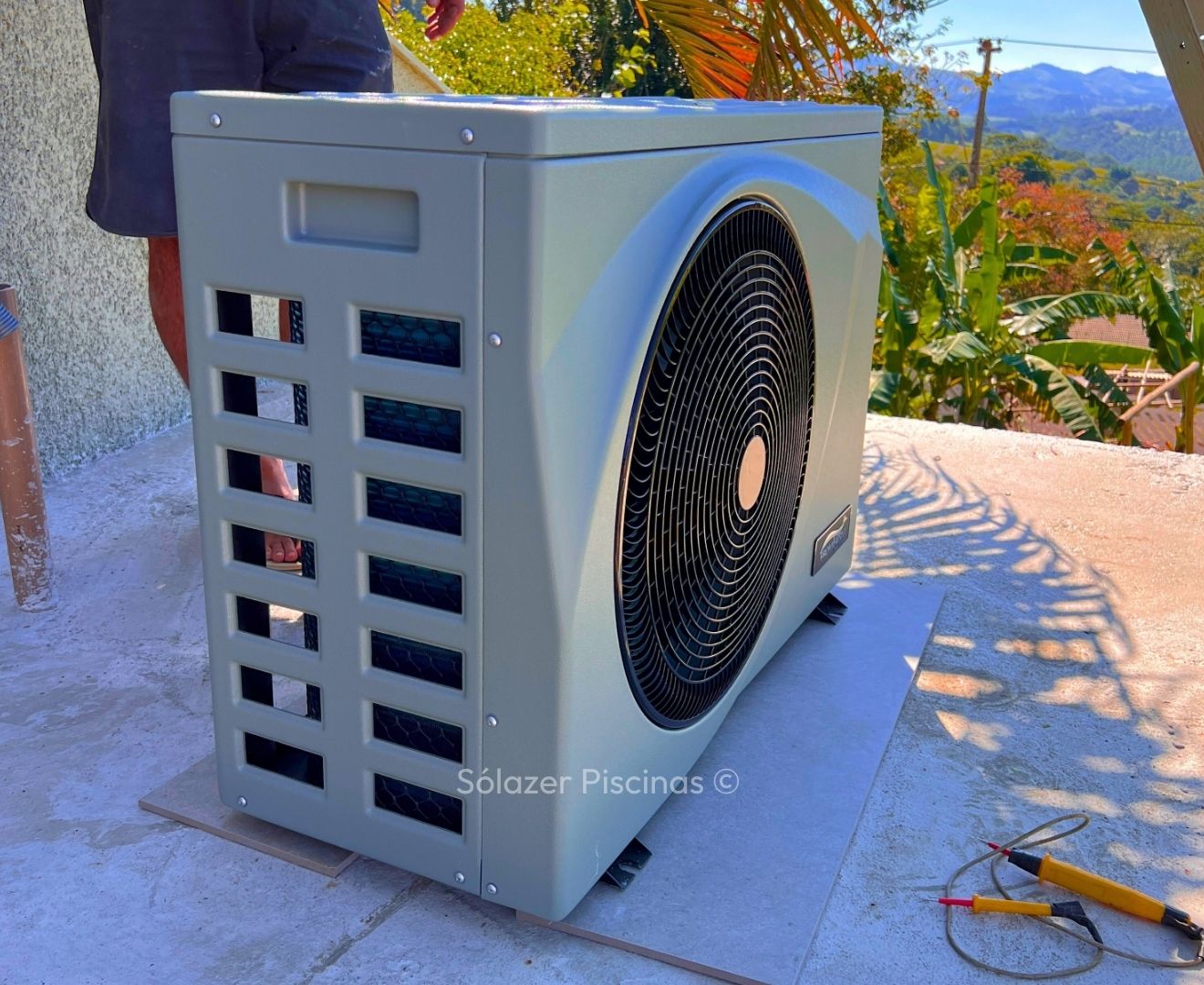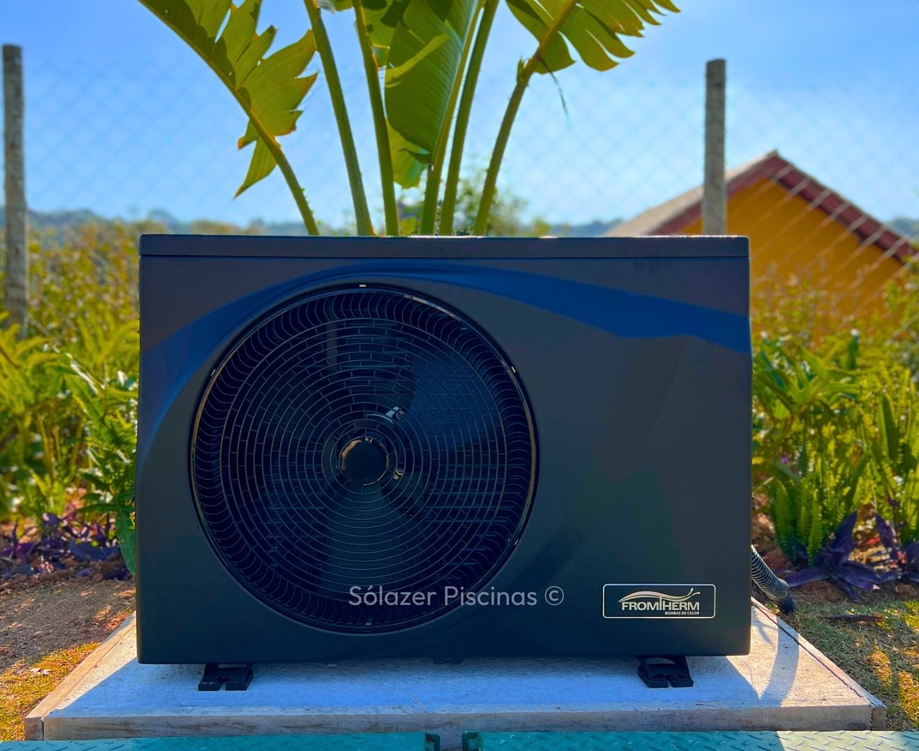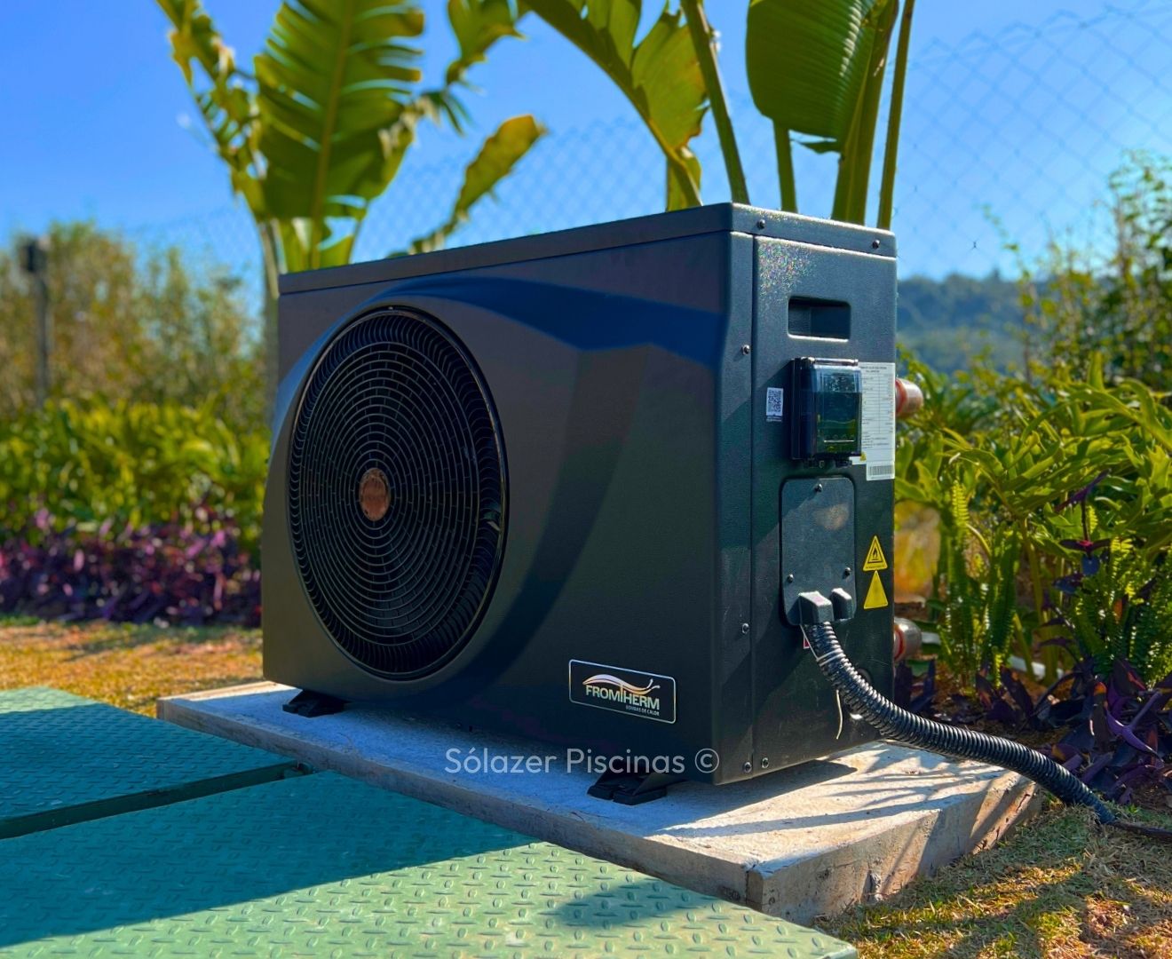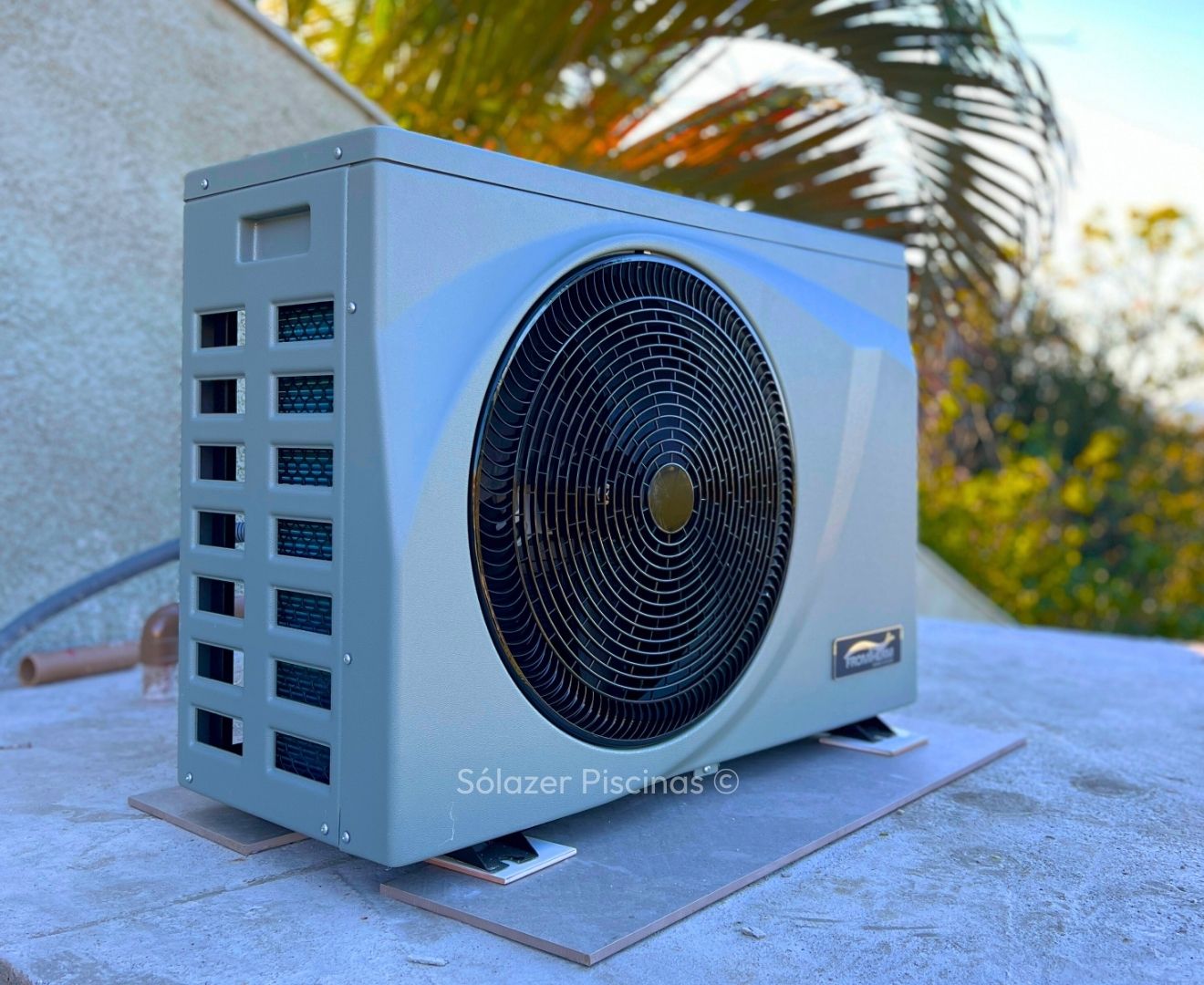 Ele utiliza o calor do ar externo para aquecer a água, que circula pelo equipamento e retorna aquecida para a piscina.